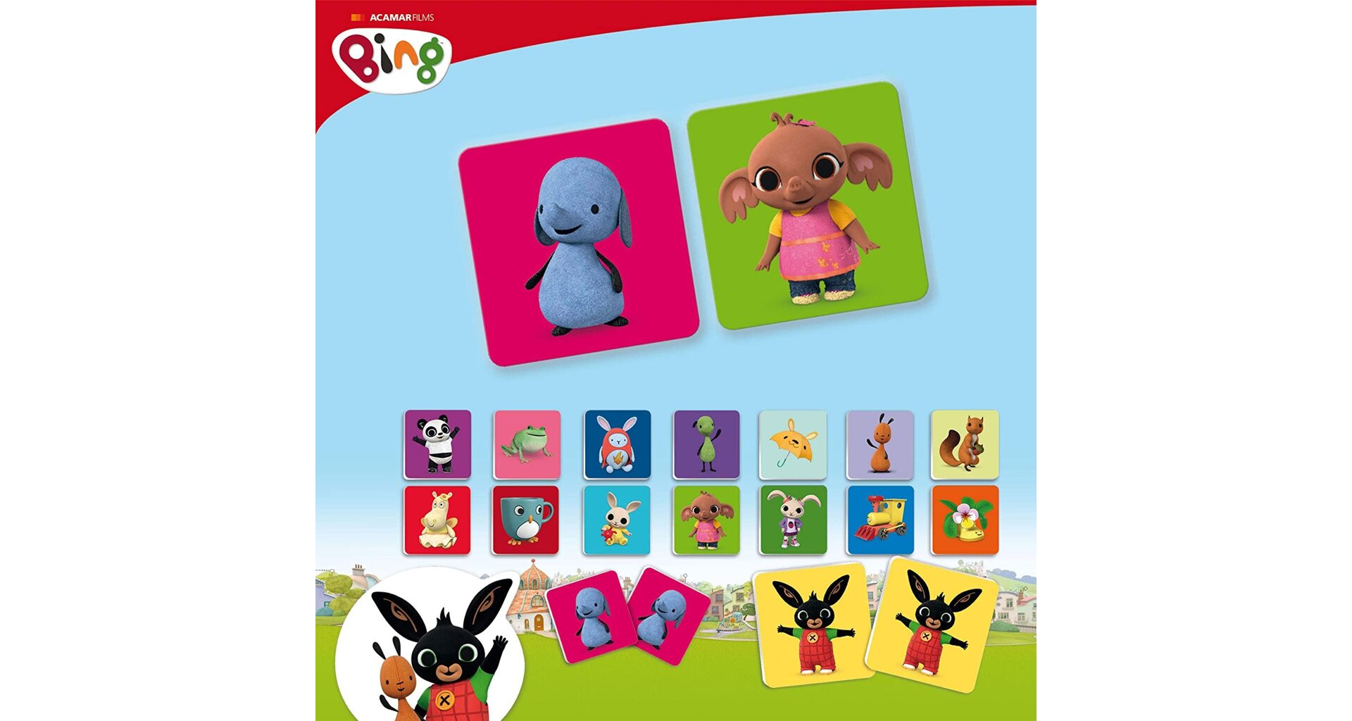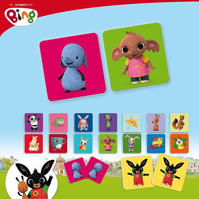 Pexeso s motivem oblíbeného dětského hrdiny králíčka Binga a jeho kamarádů.