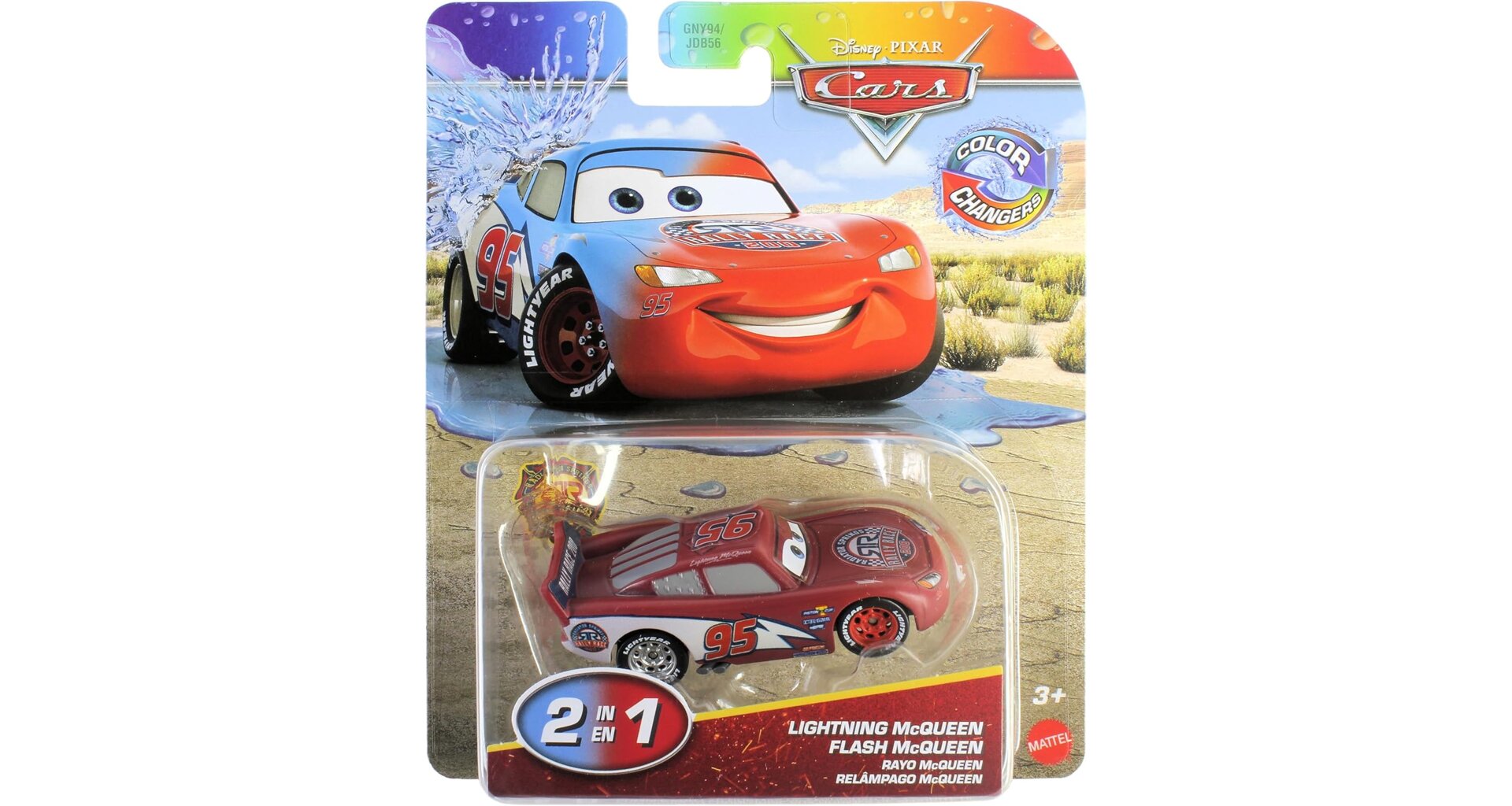 Blesk McQueen ze světa Disney Pixar Cars přichází jako autíčko z řady Color Changers, které dokáže měnit barvu podle teploty vody. Design vychází z prostředí Radiator Springs a zachycuje ikonický závodní vzhled oblíbeného hrdiny.