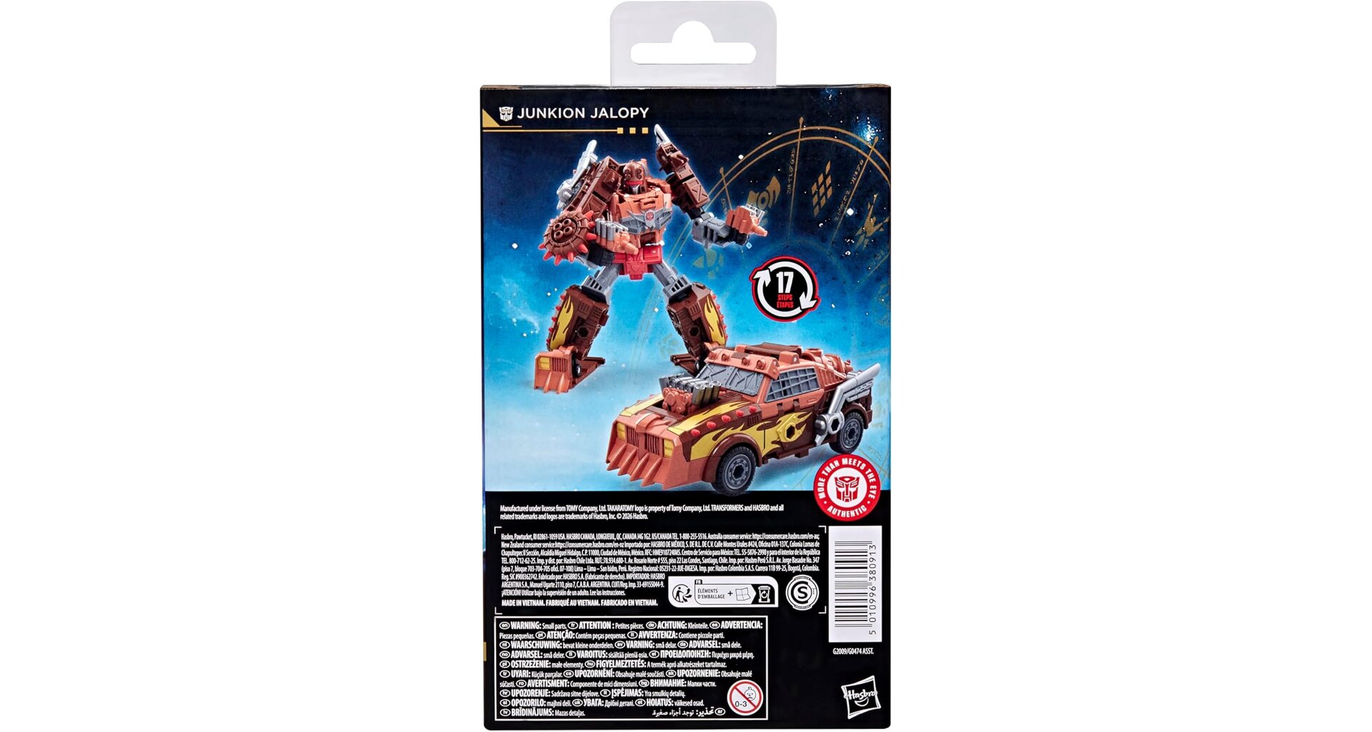 Figurka se transformuje mezi robotem a off-road vozidlem v 17 krocích a součástí balení je 7 připojitelných doplňků, včetně háku, dvou výfuků, dvou motorových blasterů a dvou tryskových doplňků. S mnoha klouby pro pózování je figurka vhodná jak na hraní, tak na vystavení.