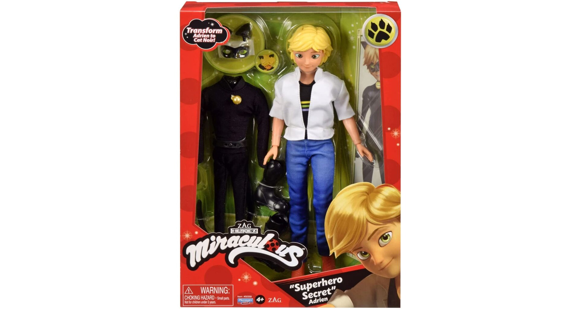 Adrien si své superhrdinské tajemství bedlivě stráží a do své podoby Černého Kocoura se mění pouze tehdy, když je jeho město Paříž v opravdu vážném nebezpečí. V tu chvíli nahradí jeho slušivý civilní outfit hrdinský kostým, který ho zahalí do černi, a v němž opravdu díky uším a ocasu připomíná černého kocoura.