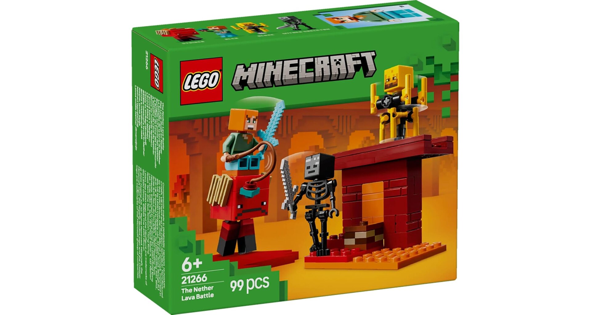 LEGO Minecraft Lávová bitva v Netheru (21266) přenáší napínavou akci z oblíbené videohry přímo do dětského pokoje. Tato malá, ale nabitá stavebnice umožní dětem od 6 let zažít dobrodružství v nebezpečném Netheru plném lávy, mobů a soubojů.