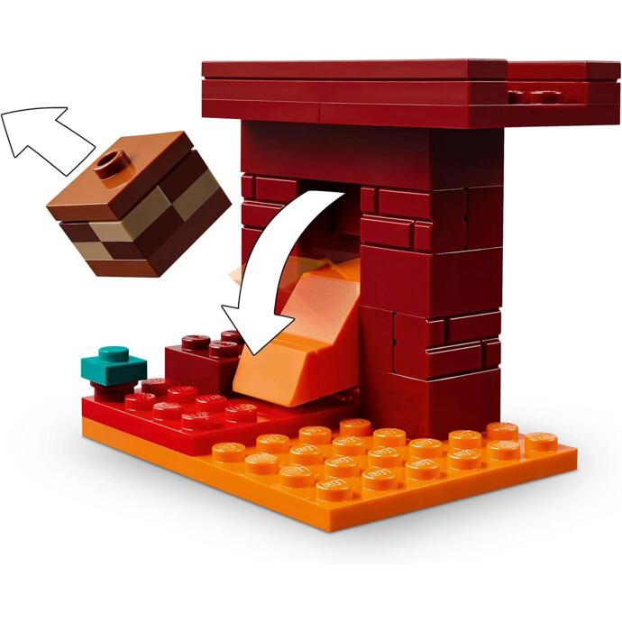 Součástí je také chodec s pohyblivýma nohama a sedlem, na kterém lze z Netheru uniknout. Pro jeho ovládání je potřeba získat podivné houby, což přidává další herní prvek. Díky aplikaci LEGO Builder si děti mohou model přibližovat a otáčet ve 3D, což stavění ještě více zpestří.