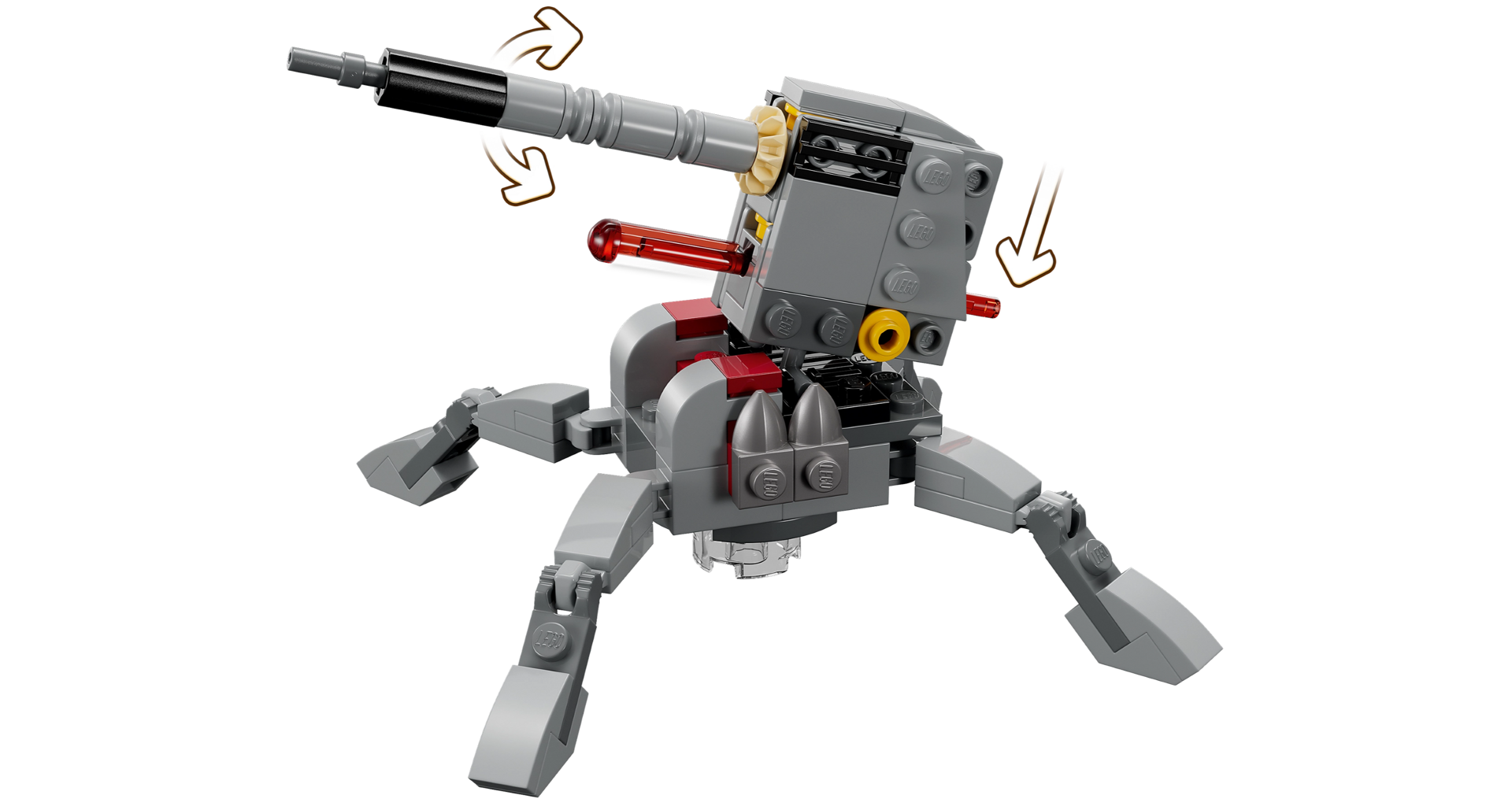 V tomto balení najdete 119 součástek stavebnice, z nichž si budete moci podle podrobného návodu sestavit dělo na střely země-vzduch a jeho obslužnou jednotku. Čtyři klony z 501. brigády včetně velitele jednotky i specialisty čekají na vás a vaše rozkazy. Vyzbrojeni jsou arzenálem, který můžete znát z filmů či seriálů s tematikou hvězdných válek. Dělo, které mají na starosti, dokonce skutečně střílí přiložený projektil.