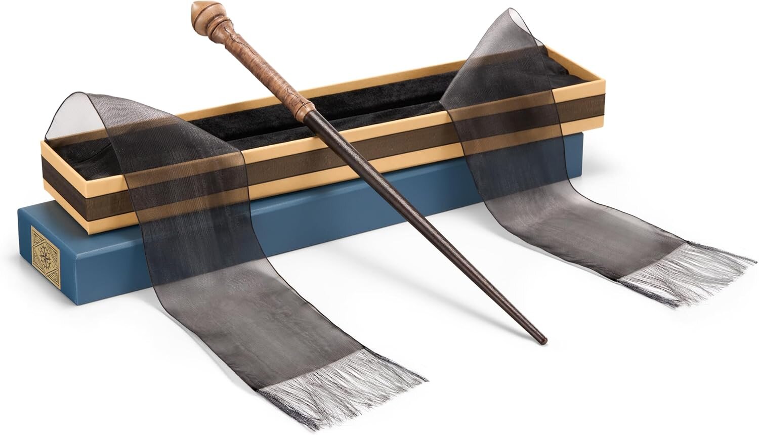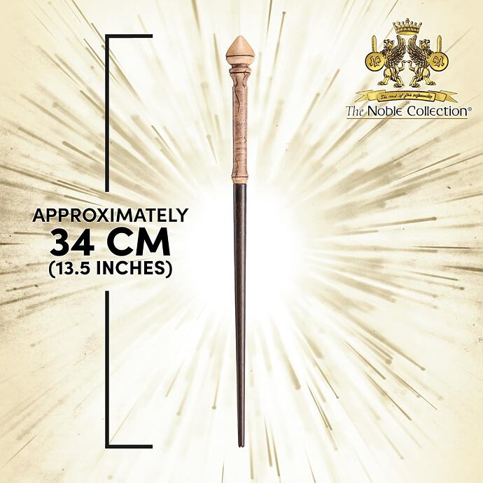 Tato detailně zpracovaná sběratelská hůlka měří přibližně 34 cm a je uložena v elegantní modré krabičce od Ollivandera s jemnou látkovou výstelkou, jak ji znáte z filmů.