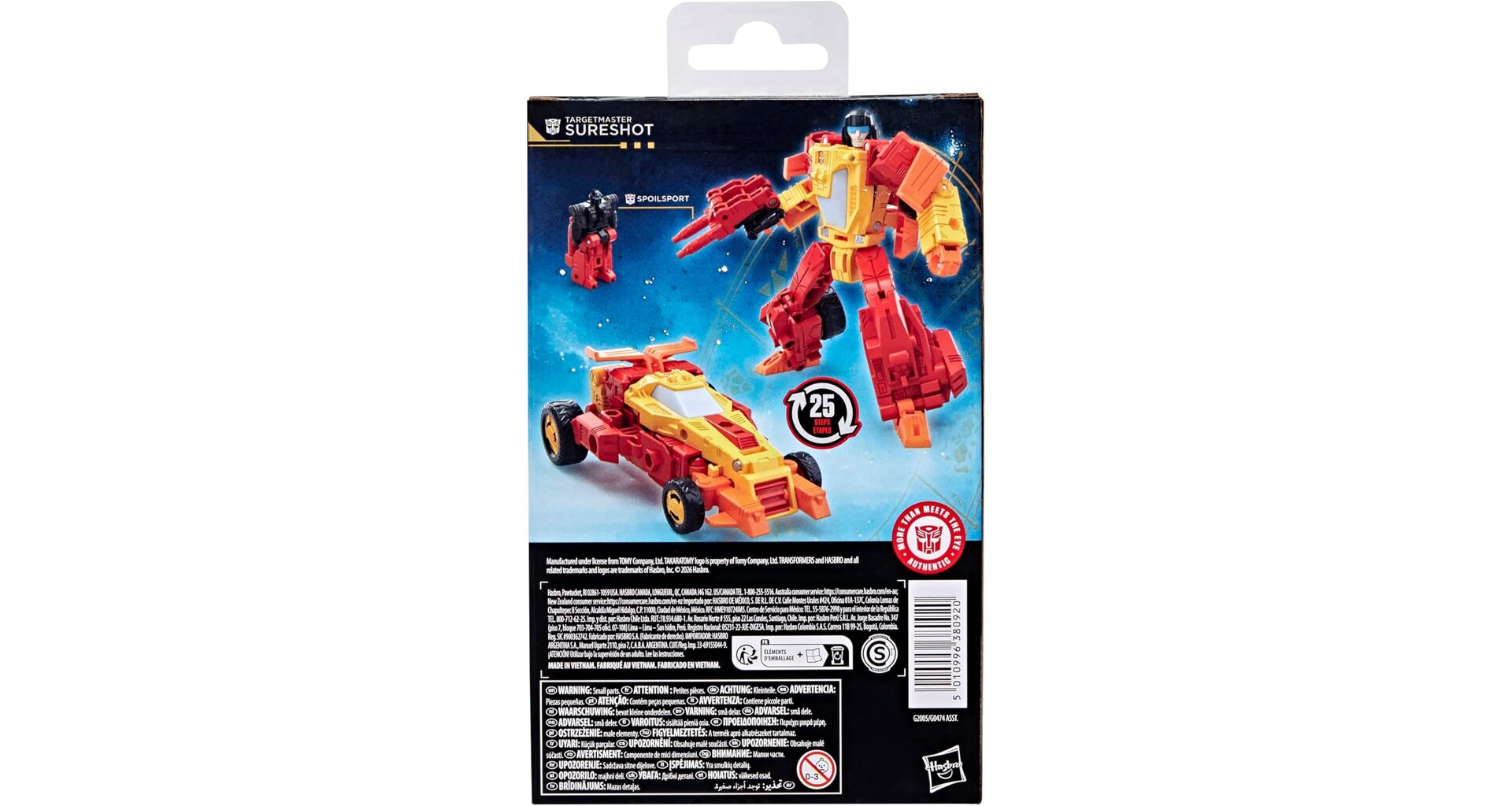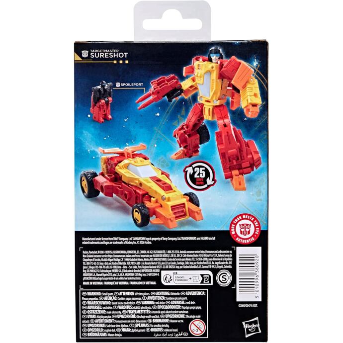 Součástí balení je také minifigurka Spoilsport, která se transformuje do blasteru a lze ji připevnit v robotím režimu. Tato ikonická Targetmaster kombinace výrazně rozšiřuje herní možnosti a podtrhuje charakter celé figurky.