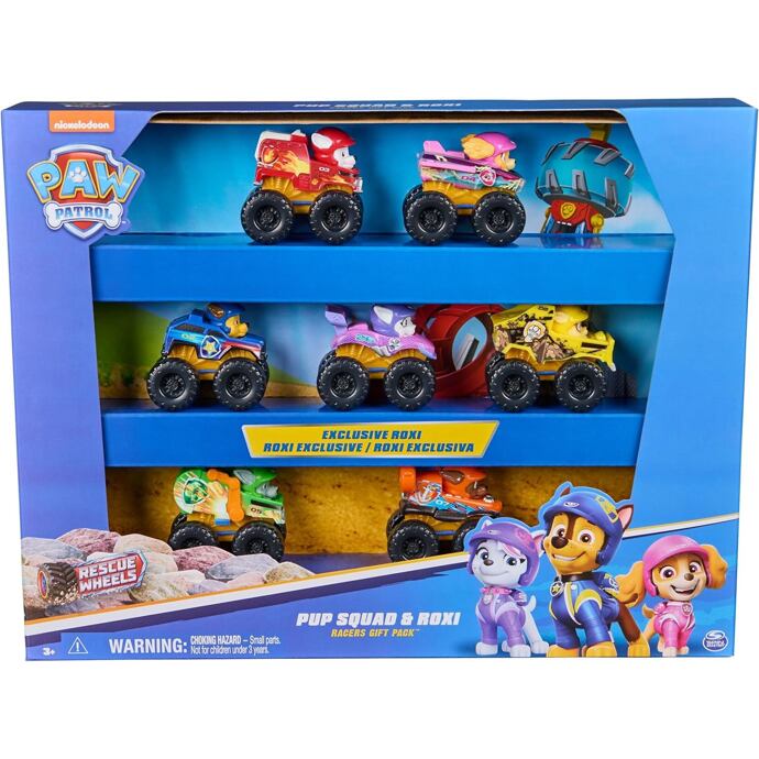 Všechny zásadní postavy pejsků z animovaného seriálu Tlapková Patrola na jednom místě? Není problém, v tomto balení na vás čekají závodní autíčka všech 6 psích záchranářů a exkluzivní autíčko Roxi, které znáte z televizní obrazovky!
