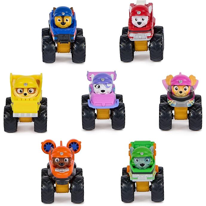 Každé autíčko měří 5,5 cm a jeho psí hrdina má na sobě svou autentickou uniformu. Se všemi hrdiny pohromadě můžete zažívat velké věci, závodit a přehrávat si oblíbené scény ze seriálu nebo vymýšlet pro psí záchranáře zcela nová dobrodružství, v nichž otestujete jejich záchranářské schopnosti, přátelství a hlavně rychlost jejich autíčka. Chase, Rocky, Skye, Rubble a další stateční psíčci z oblíbeného seriálu jsou pohromadě v jediném balení – a to znamená nekončící zábavu!
