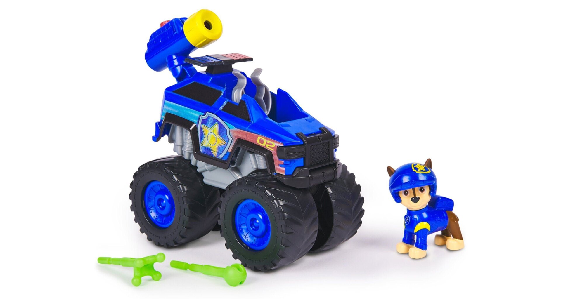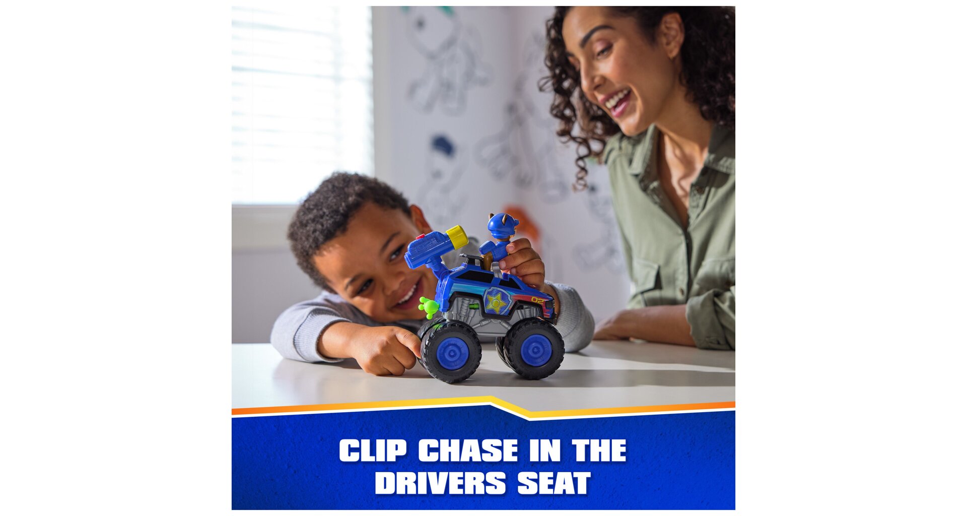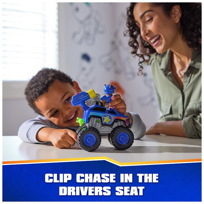 Vydejte se na vzrušující záchranné mise se Chasem a jeho policejním autem! Toto ikonické vozidlo s velkými koly a autentickým designem přesně odpovídá vzhledu z oblíbeného seriálu Tlapková patrola. Posuňte Chaseovu akci na další úroveň – posaďte ho do kokpitu a vyrazte na záchrannou akci!