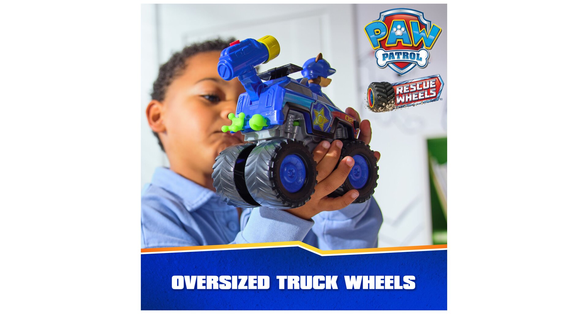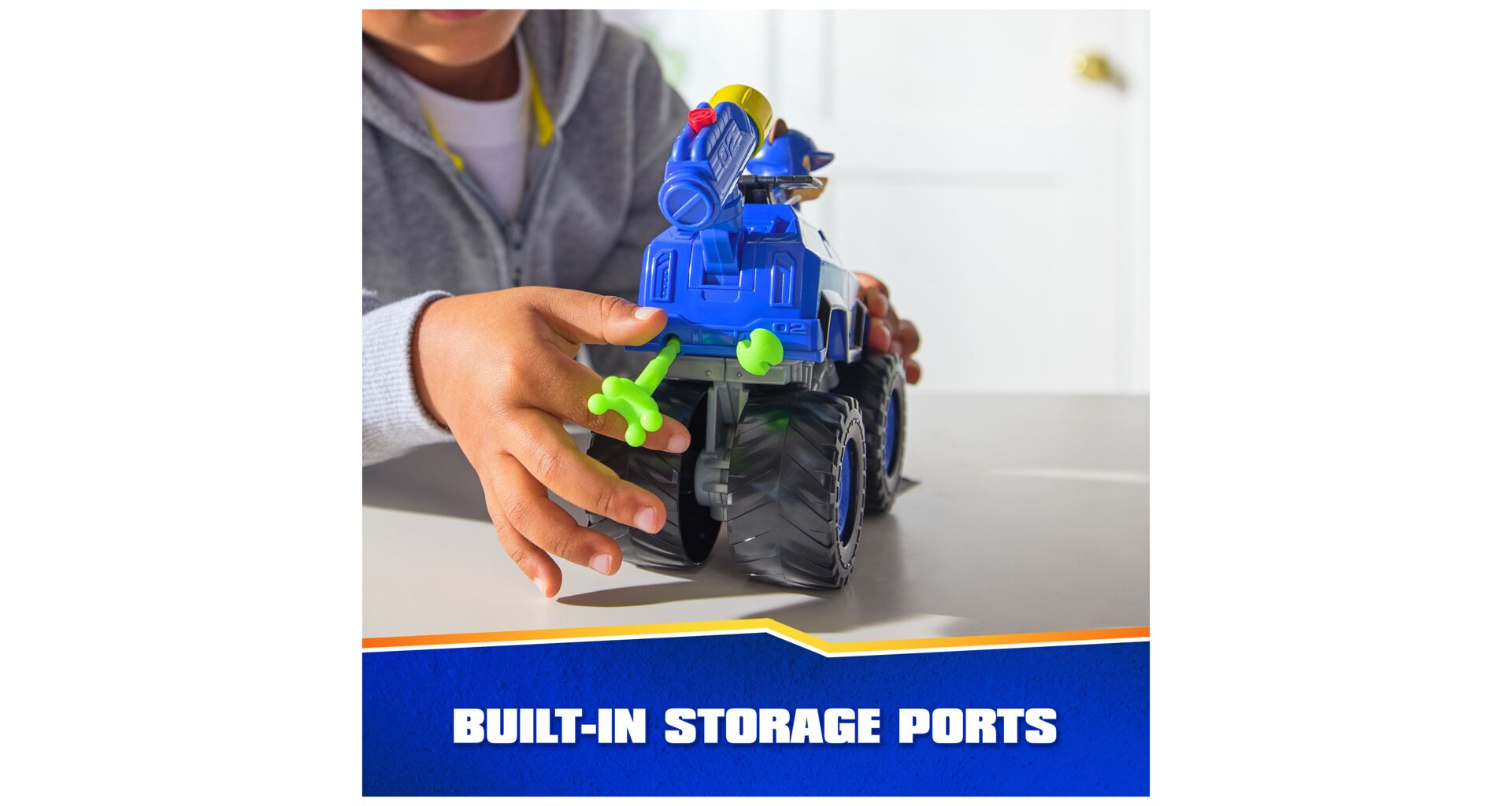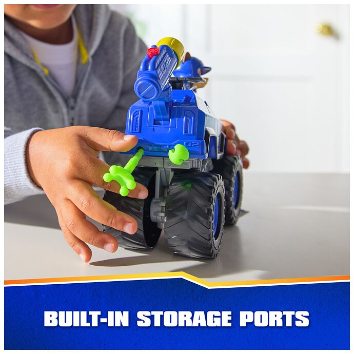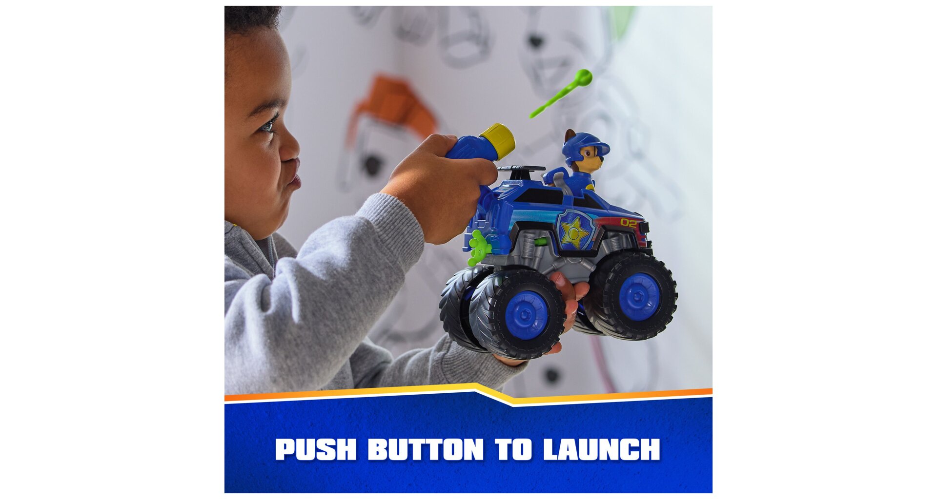 Vydejte se na vzrušující záchranné mise se Chasem a jeho policejním autem! Toto ikonické vozidlo s velkými koly a autentickým designem přesně odpovídá vzhledu z oblíbeného seriálu Tlapková patrola. Posuňte Chaseovu akci na další úroveň – posaďte ho do kokpitu a vyrazte na záchrannou akci!