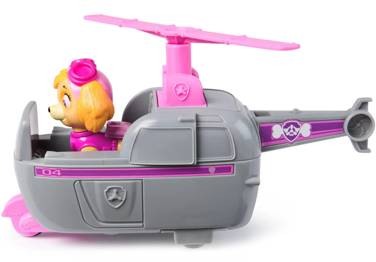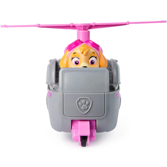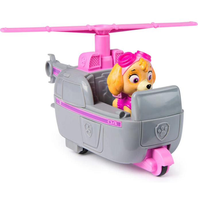 Tlapková patrola to rozjíždí na svých záchranných vozidlech! Připojte se ke Skye na akcí nabité záchranné mise v její helikoptéře. Když se objeví problém, posaďte Skye (figurka je součástí balení) na místo řidiče a vyrazte na záchranu na pohyblivých kolech!