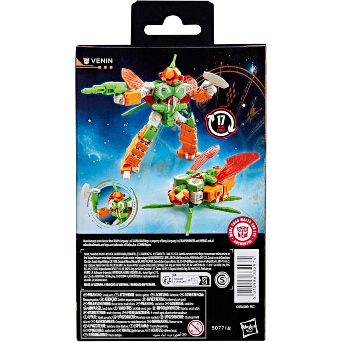 Figurka Transformera Venin z kolekce Age of the Primes přináší do sbírky jednoho z nebezpečných Insecticonů – Venina, potomka Liege Maximo Prime a vůdce svého rodu. Tato Deluxe Class figurka o výšce cca 14 cm se během 17 kroků přemění z robota v cikádu s křídly, připravenou k akčním soubojům.